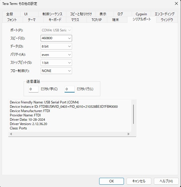 ・PC側で Tera Term 5 を起動し、以下の設定を行う。