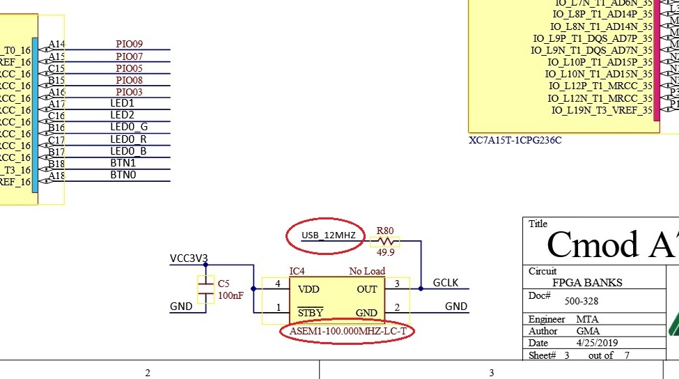 5. Cmod A7-35T の回路図は Digilent Inc のサイトで公開されており、これを参考にすればピン配置は決められるはずだが、