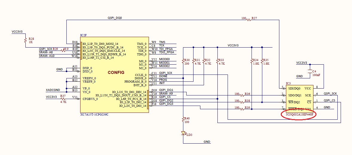 回路図では N25Q032A13EF440F と記載されているが、購入した個体では MX25L3273F が実装されていたらしい。