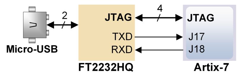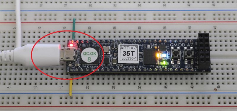 Digilent Inc. 製、Cmod A7-35T には、USBコネクタが1個しか実装されていないが、