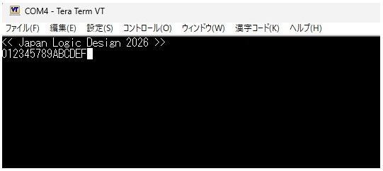 ・通信動作: ロジックRESET後、PCにタイトルメッセージを送信、その後はPCからの文字データをそのまま送り返す